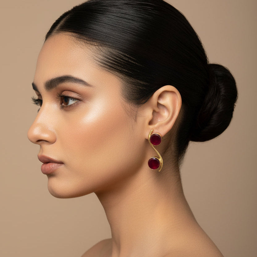 Elevate your look with Red Stone Magic earrings, where vibrant crimson stones meet timeless elegance. These striking pieces feature bold red gemstones set in a carefully crafted design that catches light beautifully. Perfect for adding a pop of color to everyday wear or making a statement at special occasions, these earrings blend traditional charm with contemporary style. Comfortable and versatile, they're an essential addition to any jewelry collection for those who love rich, jewel-toned accessories.